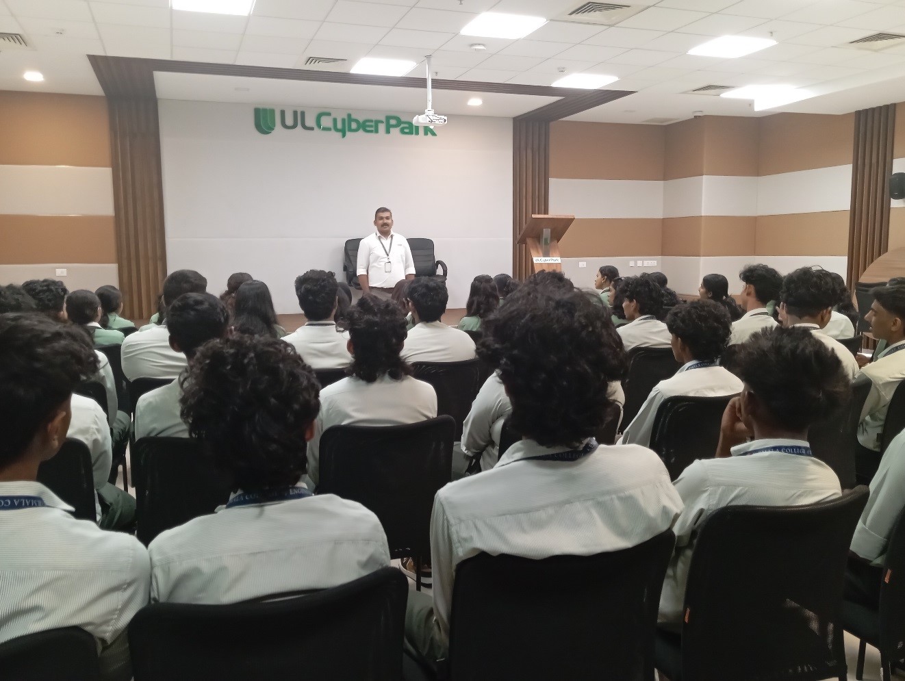 Applied Science and Humanities department organized an industrial visit to, UL CYBERPARK, CALICUT ,Kerala on 29th January, 2026.There was a lecture by cyberpark admin about their journey, and an entrepreneur shared insights on successful entrepreneurship. After the session, students got a chance to visit the working environment in cyberpark. They left with valuable insights on AI’s future scope and felt motivated.